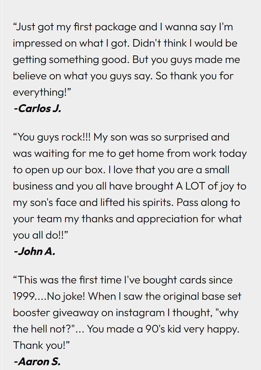 Been collecting since I was a kid and now I am in my 30s still collecting. This is my first time ordering from you all and ordering graded cards looking forward to it!!!